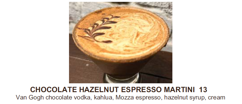 Kahlua, vanilla vodka, chilled espresso, chocolate rim